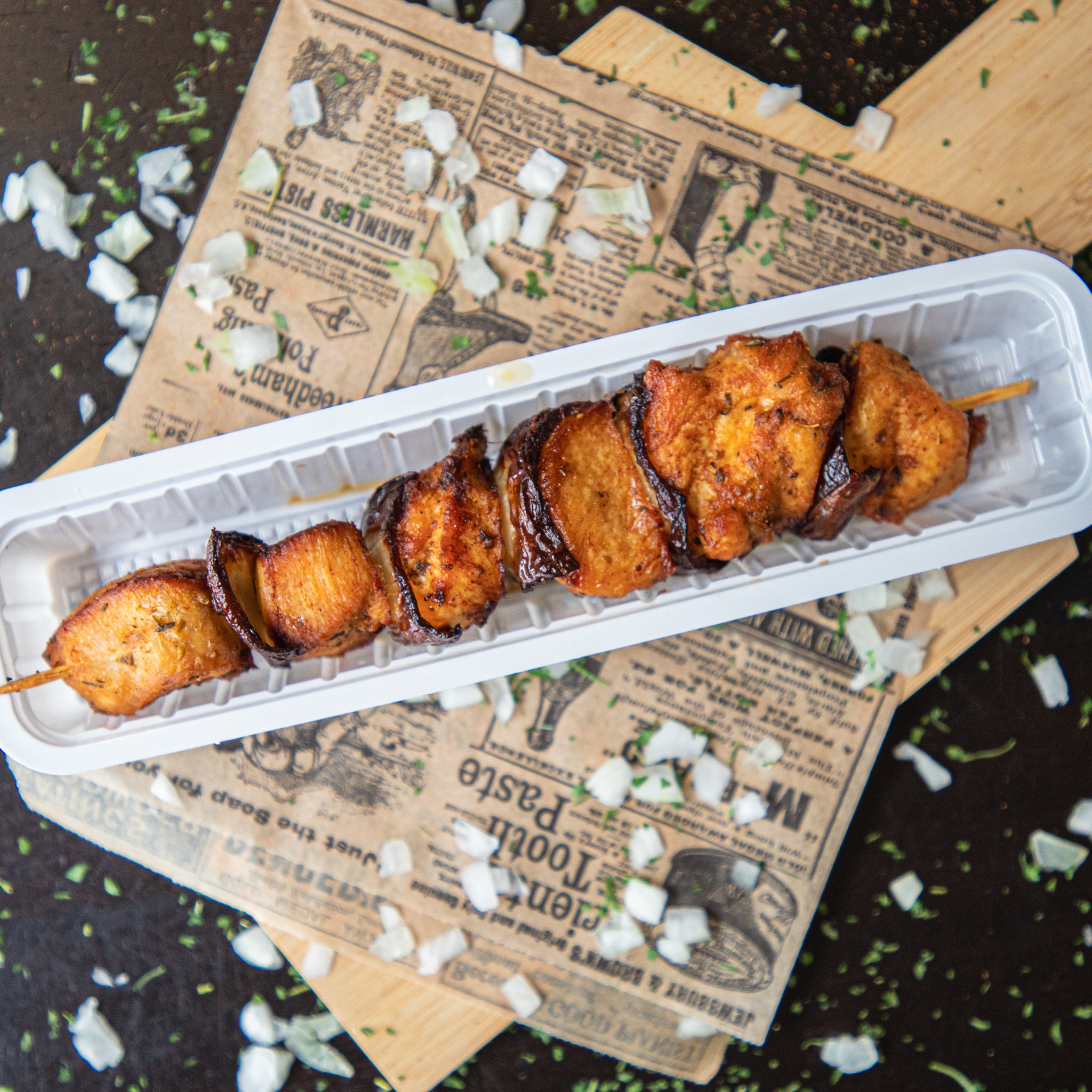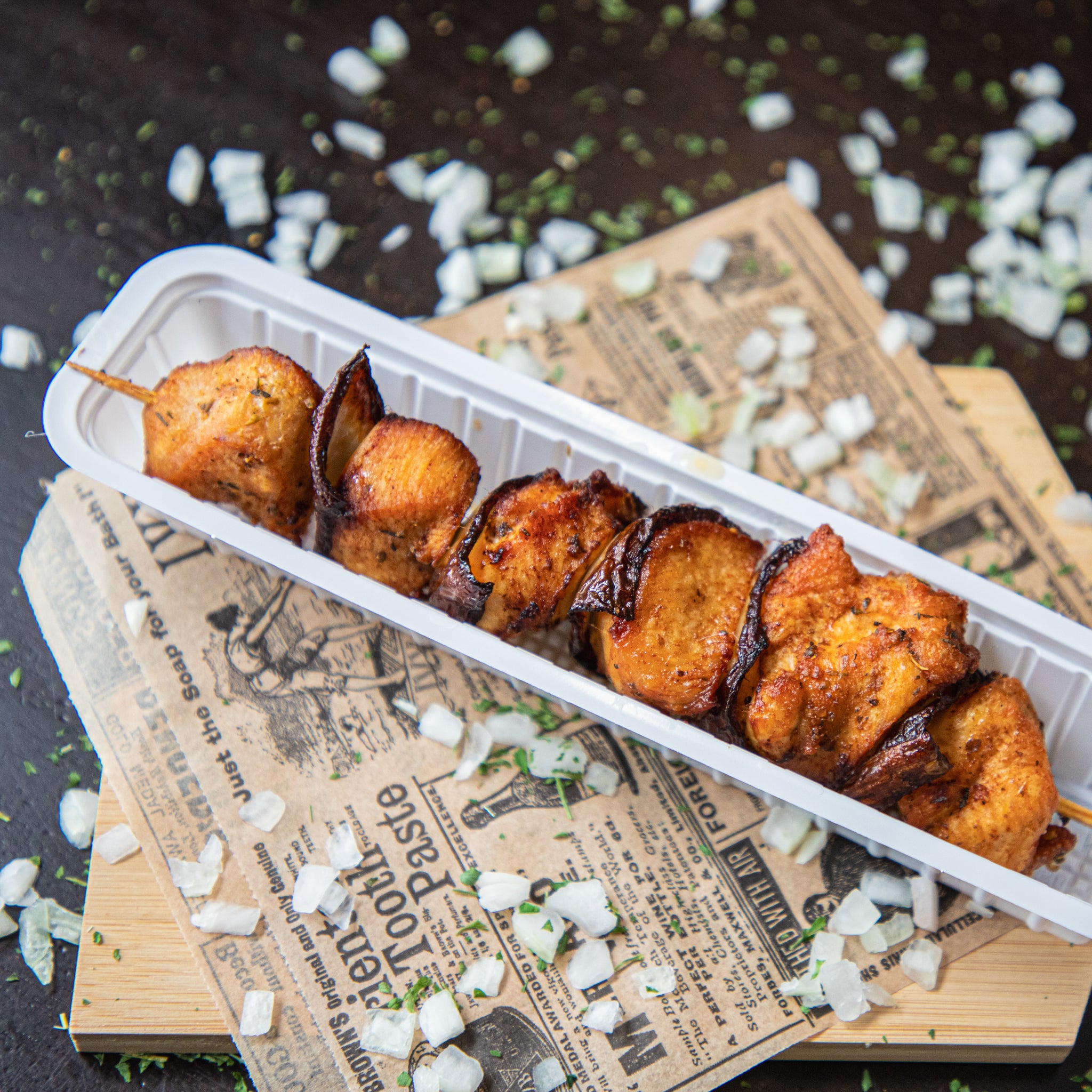 Onze huisbereide kipsaté is mals, licht gekruid en vers van het mes.