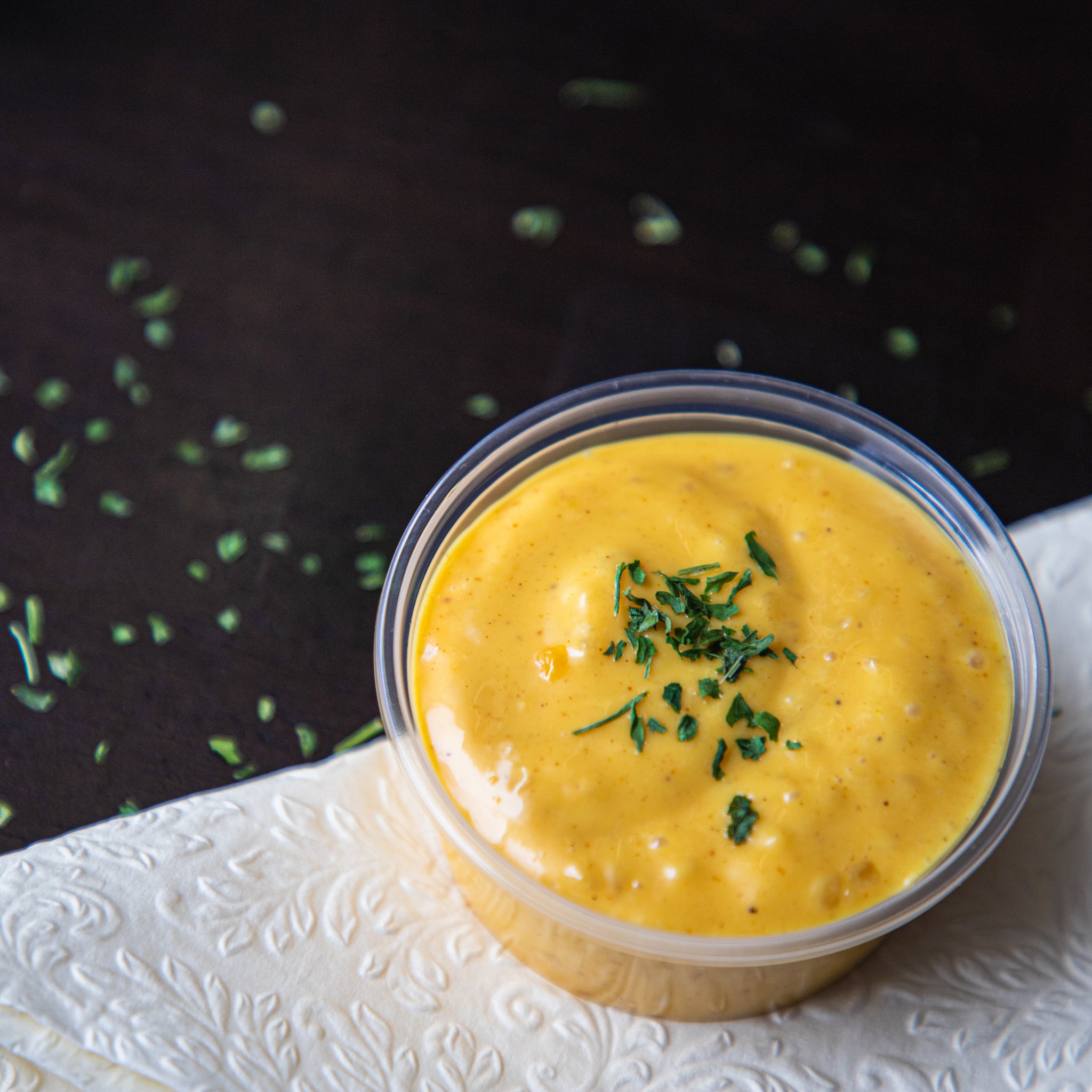 Deze gele saus met lichte kerriesmaak is populair bij jongeren.